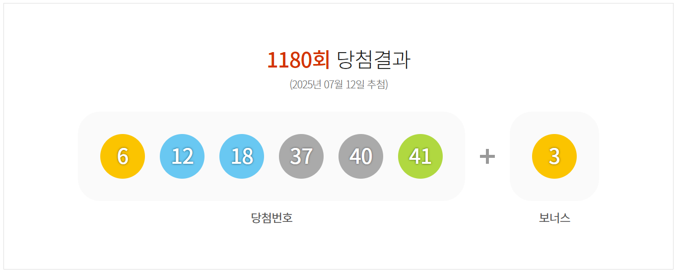 2025년 7월 12일(토), 제1180회 로또 추첨 결과가 공개되었습니다.